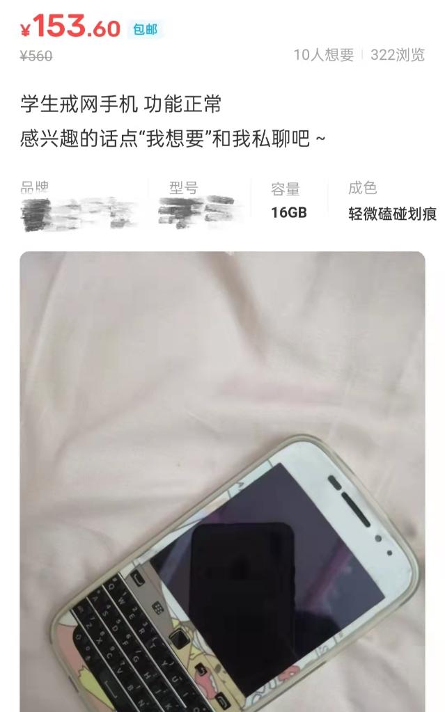 二手交易平台上出售的“学生戒网手机”产品网页截图。